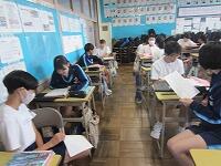 昨日は2教科、本日は3教科と、国・社・数・理・英の5教科の実力テストを各学年とも2日間にわたり行っています。子どもたちは皆、真剣な表情で問題に取り組んでいます。Do your best!