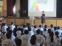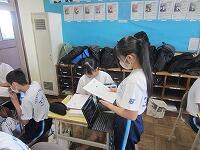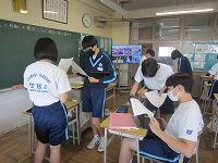 本校では、各教職員の授業力向上のために、教職員同士が積極的に授業を参観し合い、時間があるときに意見を述べています。この日は3年生の英語の時間に研究授業を行いました。