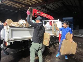 本日は、大変暑い中、保護者の皆様、地域の皆様、並びに卒業生の保護者の方にもご協力いただき、無事、資源物回収作業を終了することができました。写真は、回収業者でのPTA本部役員等の皆様方や、運搬された方々の活動の様子です。大変お世話になりました。
