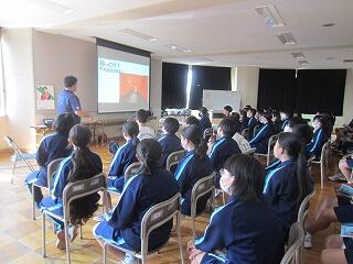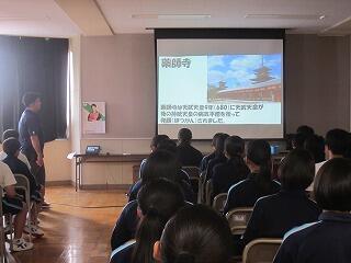 学年職員による工夫をこらしたプレゼンテーションや旅行中の心構えをきくことで、生徒は明日からのモチベーションが一層高まるとともに、全員でよい3日間にしようとする意識も高まったようです。