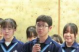 本校は、今年度82名の新入生を迎え、全校生徒266名となりました。子どもたちが本校の学舎(まなびや)で過ごす3年間で、友と支え合い、絆を深めながら、まさに筍(たけのこ)のごとく、まっすぐに成長できるよう、ご家庭・地域の皆様方と力をあわせてまいります。