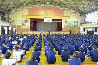 本校は、今年度82名の新入生を迎え、全校生徒266名となりました。子どもたちが本校の学舎(まなびや)で過ごす3年間で、友と支え合い、絆を深めながら、まさに筍(たけのこ)のごとく、まっすぐに成長できるよう、ご家庭・地域の皆様方と力をあわせてまいります。
