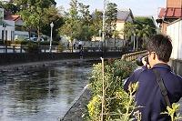 【展示・写真(右)】「再発見」をテーマにベストショットをねらってファインダーをのぞいています。