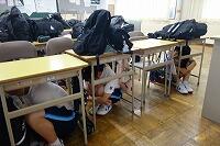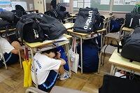 昨年7月に近隣他市町で竜巻による被害が生じたことに加え、数年前には市内でも竜巻被害が発生したことから、竜巻が発生しやすいこの時期に、机をシェルター代わりにして身を守る竜巻想避難訓練を実施しました。今年度の避難訓練は4月の火災想定に次いで2度目でしたが、今回も生徒は真剣に取り組んでいました。