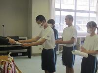 この日の午後、7月28日(日)に開催予定の資源物回収活動について、町内別に生徒が集合し、担当教員から説明をききました。保護者の皆様及び地域の皆様には、本活動のご協力につきまして、どうぞよろしくお願い申し上げます。