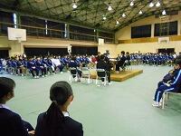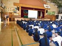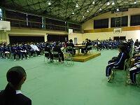 この日の午後、新生徒会役員を決めるため、1・2年生の立候補者による公開討論会が、全校生徒立ち会いの中、体育館で行われました。3年生の現生徒会役員の進行の下、立候補者は皆、真剣な面持ちで、学校生活をよりよくするため、与えられたテーマについて自分の考えを熱く語りました。