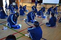 緊急時の心肺蘇生法の技術習得をねらいとして、日本赤十字社の指導員2名を講師にお招きし、2年生が心臓マッサージの方法やAEDの使い方について学びました。