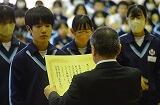 本校は、今年度82名の新入生を迎え、全校生徒266名となりました。子どもたちが本校の学舎(まなびや)で過ごす3年間で、友と支え合い、絆を深めながら、まさに筍(たけのこ)のごとく、まっすぐに成長できるよう、ご家庭・地域の皆様方と力をあわせてまいります。