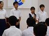 夏休みに入り、本校生が多方面において活躍しています。8回目の今回は、7月28日(月)に行われた広島平和記念式典中学生派遣壮行会についてです。この日の午後、本校2年生の生徒2名が、市内の他の中学校2年生24名とともに、市役所で行われた壮行会に参加しました。派遣団の26名の生徒は、8月5日(火)~7日(木)の3日間、広島県内を訪問し、平和記念式典や被爆体験講話等に参加します。たくさんの学びがあることを期待しています。