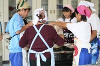 9月27日(金)、1・2校時を使って2年2組の生徒が、大宮公民館において家庭科の調理実習(うどん作り)を行いました。今回も、前回の裁縫の授業でお手伝いいただいた大宮地区女性会(若色会長)の皆様のお手伝いをいただき充実した調理実習を行うことができました。2年生の全クラスが同様の調理実習を行うことになっています。