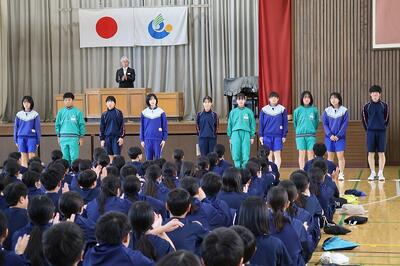 道端に咲く花に気づかなければ、それが美しいとはわからない。「気づく」ためには柔らかい心でいることが大切である、という話を、分かりやすい例をもとに話してくださいました。花に限らず、自分の身近なところでのさりげない気づかいや明るいあいさつなど、周囲の良いところを見つけましょう。お互いがそういう良いところに気づくことで、より良い集団や学校になっていくはずです。
