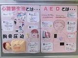 本日、学校保健委員会が開催されました。本年度は密を避けるために、保健委員会の1・2年生、PTA保健体育部・成人教育部の保護者の皆様に人数を絞って行いました。本校の養護教諭から「心肺蘇生法」と「AEDの操作方法」の説明があり、その後に二人一組でペットボトルを使って心臓マッサージの実習をしました。1分間に100~120回のペースで行っていましたが、実際に実習している生徒や保護者の皆様の様子を見ていましたら結構大変そうでした。今回は養護教諭の教育実習生が二人加わり、大変充実した内容となりました。ちなみに、二人の実習生で大変素晴らしい掲示物を作成してくれ、保健室へ向かう階段の途中に掲示してあります。
