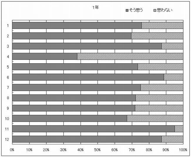 ● 1年生は、勉強に不安を持っている人が多い。授業で先生の話をしっかり聞くこと。