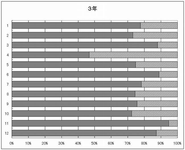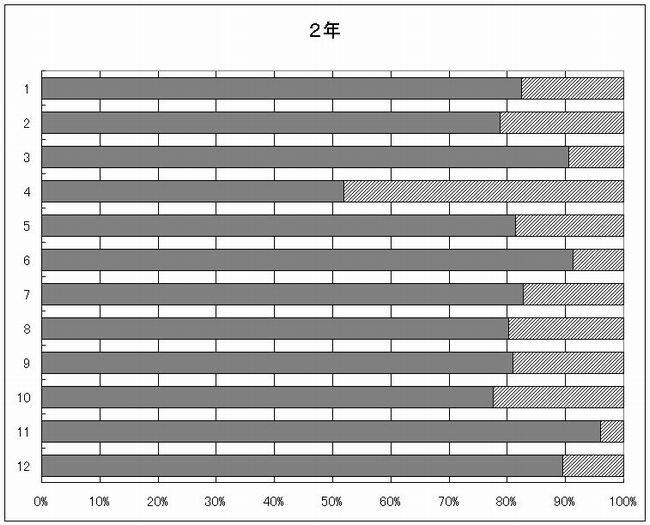 学年やクラスによって大きく差が出た項目でした。授業力、学級経営、生徒と教師の人間関係、いじめなどのトラブル対応への評価が総合的に出たものであるととらえます。