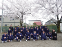 今年は、近年では珍しく桜の開花が遅く、入学式の頃が満開でした。新入生は、校庭の桜の木の下でクラスごとの記念撮影も行いました。