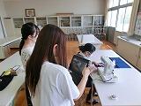 例年、本校では学校ボランティアを募集しまして、ミシン実習や調理実習、習字の授業等で学習支援をしていただいておりました。ボランティアさんの参加が多い日などは、各班ごとに1名ずつ支援に入っていただいたこともあり、初めて実習をする生徒たちにとりましては大変心強く、充実した授業になっていました。本年度は、新型コロナウイルス感染拡大防止の観点から募集をかけることができませんでした。そこで、何か生徒たちのためにできることはないかと、地域コーディネーターさんと相談をさせていただいたところ、ボランティアさんのご協力を得て『師範動画』を作成し、生徒たちの実習に役立てることができたらということになりました。昨年までのように手取り足取りとまではいきませんが、生徒たちは各々動画を視聴しながら実習をしておりました。これも、日ごろから多くのボランティアさんのご協力が得られ、ICT機器が充実している本校ならでは取組だと思います。今後も、新型コロナウイルスに負けないよう、新しいボランティアの形を模索しながら進めていければと思っております。