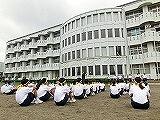 15時に無事終了!本年度の巨大人文字は、生徒一人一人が光り輝くようにと「光」でした。西日が差し始め、影の飾りが綺麗に入ってます。