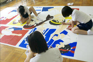 9月に入るとすぐに体育祭があります。 毎年、野球のバックネットにはその年のテーマにそった大きな絵が飾られます。 美術部が作っています。 今年もすでに制作が始まっており、毎日少しずつ完成に近付いています。 今年はどんな絵になるのかな。