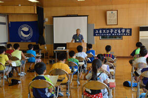 南中は、校舎の1階を市民に開放しています。 音楽室や視聴覚室は、毎日のように夜間の貸し出しがあります。 今日から3日間、栃木ユネスコ協会主催の「ユネスコ子ども学校」が開かれ、本校の開放教室を中心に小学校3年生から6年生がいろいろな体験活動をします。 写真はその開校式の様子です。 楽しい思いでができるといいですね。