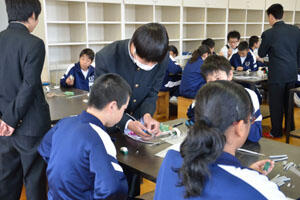3年生の受験勉強のため、放課後学習会をやっています。 これは理科の学習、隣のクラスでは英語をやっています。 年が明けるとすぐに私立高の試験が始まるので、みんな真剣です。 学習会は希望制ですが、どんどん参加しようよ!