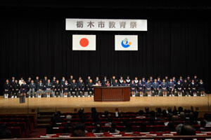 栃木市文化会館(南中の隣)で市長さん臨席の下、栃木市教育祭が開かれました。 優良生徒で南中の生徒3名と、教育功労賞でPTA会長さんが表彰を受けました。おめでとうございます。