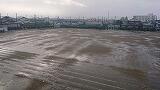 9時頃に雨が上がり、1時間30分でこの状態までグラウンドが回復しました。開始時間まで2時間以上あるため、本日の分散体育祭は予定どおり実施いたします。生徒だけでなく、グラウンドの水はけも『日本一』です。