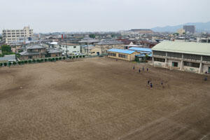 4階、1年生の教室はとても眺めがいい。 栃木駅、太平山、駅前の町並み、金色のスペーシアもよく見えます。 朝からの雨があがり、校庭のコンディションは最高で、これから部活動が始まります。 教室では教育相談が行われ、体育館からはシャトルランの恐怖のメロディーが聞こえてきます。 今日もみんながんばっているね。
