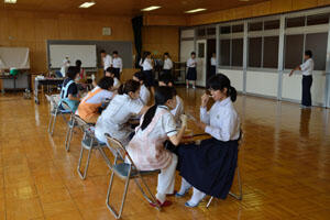 1学期中間テスト第1日、1年生にとっては初めての中間テストです。 1時間目、国語の問題用紙を前に、神妙に説明を聞いています。 監督はその時の授業の教科担任です。