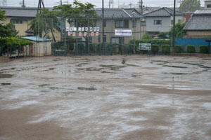 関東が梅雨入りしました。 昨夜からの雨で8時の校庭は左の写真のとおり。 ところが雨が止んで2時間も経つと、水たまりはありません。 本校の校庭は市内でもトップクラスの水はけの良さです。