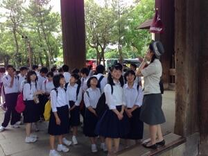 心配していた雨も京都に着いた時はきれいにあがって、気温もうなぎのぼり。写真は奈良公園の金剛力士像のところです。全員楽しく一日を終えました。この時間はお風呂にはいっています。