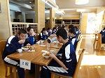 昨夜はホテルにて『立志式』が行われました。学年主任の講話、生徒代表作文朗読、そして一人一人が漢字を書いた色紙を持って立志を迎えての決意を発表しました。また、保護者の皆様にご協力をいただきました記念映像視聴では、懐かしい写真を見ながら自然と拍手がわきました。最後の記念合唱「次の空へ」は生徒たちの熱い思いが伝わる素晴らしい合唱となりました。例年、内緒で?進められている保護者からのお手紙は、多くの生徒が涙を流しながら読んでいました。