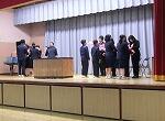 本日、文化会館にて「3年生を送る会」が実施されました。第1部(式典)では、合格祈願を兼ねた「絵馬・千羽鶴の贈呈」と「だるまの目入れ」がありました。また、在校生から学年合唱を1・2年それぞれから贈り、卒業生からも合唱「道」のお返しがありました。3年間を振り返ってのスライドショーでは、懐かしい写真を見ることができ、大いに盛り上がりました。第2部では映画鑑賞を行い、受験勉強で疲れた心と体が少し癒やされたのではないかと思います。卒業式まであと14日、残り僅かですが最高の思い出を胸に巣立ってください。