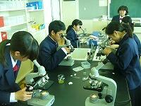 1年生理科の授業で、顕微鏡を使って水中の微生物を観察しました。丸い形のものや糸みたいなものなど、いろいろな微生物が見つかりました。