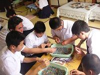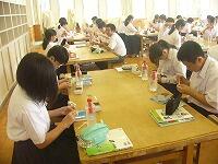 7月に入り、教室の中も暑くなってきましたが、生徒たちは勉強をがんばっています。1年の技術では、ペットボトルでのミニトマト栽培に取り組んでいます。2年生英語では、辞書を使ってグループ対抗の言葉さがしゲームを行いました。