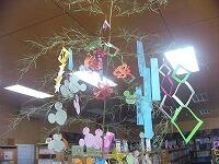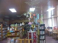 7月7日(木)、図書室で七夕飾りをしました。生徒たちは、本を借りると貰える短冊に、思い思いの願い事を書いて笹竹につるしました。
