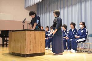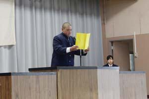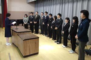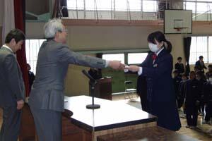 写真は修了式の様子です。修了書を代表に授与し、1年間の反省と向上を述べてもらいました。皆さん、1年間よくがんばりました。