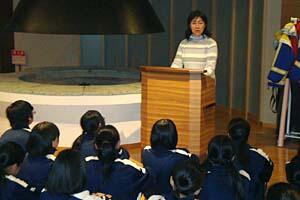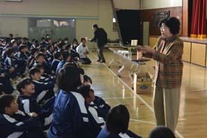さて、今日11月27日は後期のメイン・イベント「人権講話」がありました。講師は人権擁護委員の矢尾板さんです。はじめにビデオで、全国中学生人権作文コンテスト中央大会の入選作品をもとにした中学生たちのトークライブを視聴しました。聴覚障害とハンセン病をテーマにした作品をもとに、人権について深く考えた内容のものでした。後半は矢尾板さんから人権の昔と今、そしてご専門の法律と人権についての講話をいただきました。内容の濃い充実した講話でした。ありがとうございました。