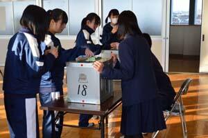 来年度の生徒会役員選挙がありました。生徒会長候補として2年生11名、副会長候補として1年生8名が立候補しています。誰をとっても来年の南中を引っ張っていける優秀な人たちです。これまでポスターを掲示し、応援演説をし、そして今日が立会演説会です。その後、栃木市選挙管理委員会からお借りした投票箱と記載台を使って投票を行いました。さて、次期会長は・・・ドキドキですね。
