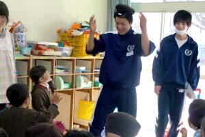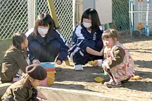 3年生の家庭科では、毎年この時期に「保育」の授業があります。 この日は3年3組が「みどり幼稚園」を訪問し、保育の実習を行ってきました。みんな子供たちが大好きで、短時間でしたが楽しく実習ができました。園児と遊んだり遊ばれたり・・良いお父さんお母さんになれそうですね。