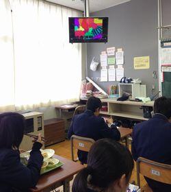 このニュースでもご存知のとおり、視聴覚機器をたくさん導入して1年後にその成果を発表します。今日はそのために1年1組の理科と1年3組の美術で研究授業をしました。理科は大型テレビを活用した授業で、実験の説明や生徒の発表に使いました。美術はアニメーション作成のためにiPadを使いました。生徒は慣れた手つきで機器を操作し、楽しくまた、よく考えて授業を進めることができたようです。1の1と1の3の皆さん、とてもよくできましたよ。授業者の先生は何ヶ月も前から授業の案を考え、ここ数日は、毎晩遅くまで準備をしていたようです。たいへんお疲れ様でした。はやく機械に慣れて、どんどん使えるようにしたいですね。
