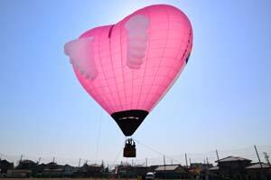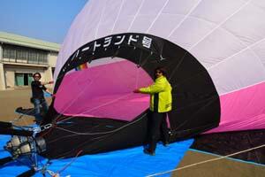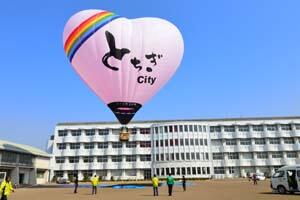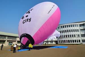 暖かな春の校庭に、熱気球が浮かびました。 栃木市の新庁舎落成記念行事が文化会館で行われた今日、式典の前に本校校庭で、栃木市が作った気球のお披露目がありました。ゴーッというバーナーの音が響き、みるみる気球はふくらみ、青空に浮かんで、ハート型に天使の羽がついた、とてもかわいい姿を見せてくれました。