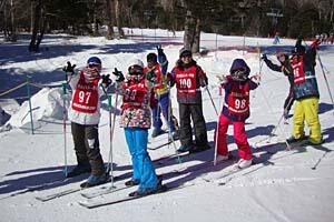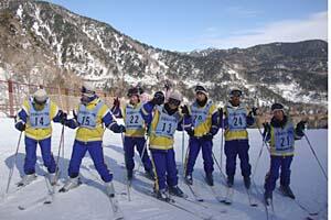「ともに支え合い、自分に負けずに、enjoyしようぜ!、スキー学習 !!」