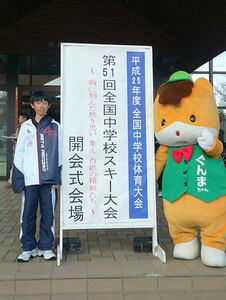 2年の橿渕君が,2月2日尾瀬戸倉スキー場で開かれた「全国中学校スキー大会」男子回転に出場しました。先がけて開催された栃木県大会で第5位となり,全国出場権を獲得したためです。2月3日に試合があり,187名の出場のなかで,みごと81位(58.64秒:出走は184番)の成果を収めました。おめでとう!引率の赤坂先生,大会役員お疲れ様。