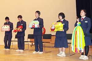 9日放課後、新入生のための部活動紹介がありました。 各部の部長さんがステージで紹介しながら、フロアでは先輩部員が演技を見せてくれます。 23日には入りたい部を決定して、申し込まなければなりません。 3年間活動する部ですから、慎重に選んでくださいね。