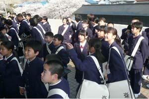 昇降口でクラス発表の掲示を見て、自分のクラスに入ります。とても緊張しています。でも、担任の先生から優しく説明していただき、入学式は立派にできました。君が代の歌声も返事もよくできました。これから新しい生活がスタートします。仲間との絆を深め、有意義な中学校生活を送ってください。
