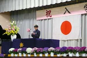 温かな日差しと満開の桜に囲まれ、104名の新入生が入学しました。 おめでとう!