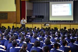 2年生は県立高校説明会(写真)と立志式・スキー合宿の説明会の2本立てでした。工業科、農業科、商業科、普通科の特色を市内の県立栃木工業、栃木農業、栃木商業、栃木翔南の各高校の先生に説明していただきました。高校選びは将来へのワンステップ。将来、自分がどんな職業に就き、どんな生活をしていこうか、これを機会に考えてください。賃金を得るためだけの職業(労働)ではなく、自分が働くことの意味や価値を自分なりに見出してほしいです。また1月には立志式があります。自分は将来どんな人間になりたいのか、そのために今何をすべきか、などなど自分を見つめることが大切です。今日の説明会をきっかけに、自分について考えよう。