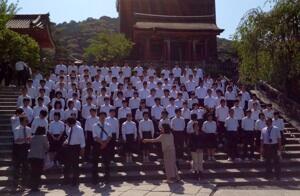 とうとう最終日を迎えました。今日もみんな元気いっぱいです。最初の訪問地は清水寺、朝日を背に写真撮影、卒業アルバムを飾る写真です。さあ今日も楽しい思い出をたくさん作ろう。