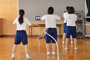 体育のダンスの授業風景です。グループごとにYoutubeなどの動画を参考にしながらダンスの練習です。子供たちの前にあるのはiPad、スタンドを使ってTVのように使います。全体で見るときはAppleTVを使って大型TVに写します。Apple社の回し者ではないのですが、すごく便利です。