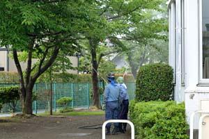 35度の炎天下,そして室内と夏休み中の南中は工事ラッシュです。